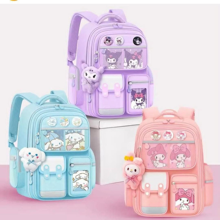 کوله پشتی سانریو طرح کرومی، ملودی و سینامورول | مناسب مدرسه با اکسسوری فانتزی