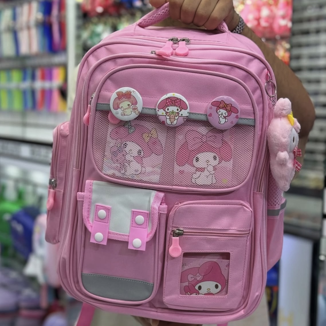 کوله پشتی سانریو طرح کرومی، ملودی و سینامورول | مناسب مدرسه با اکسسوری فانتزی